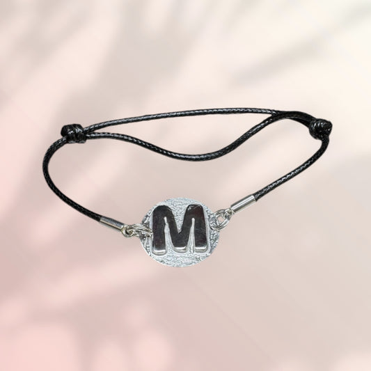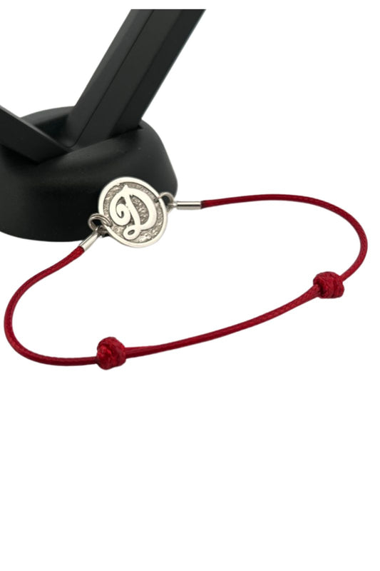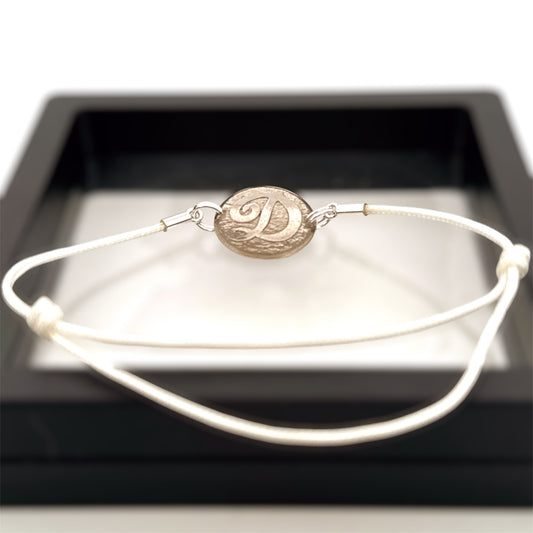 Brățară argint cu epoxi cu simbolul "D" pe șnur alb