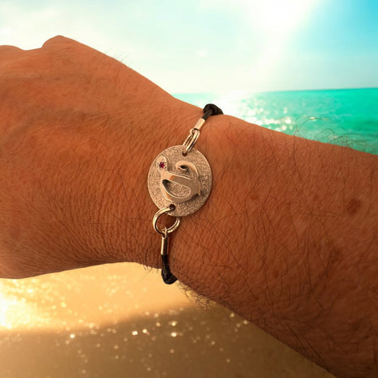 Brățară cu șir cerat - reglabilă - negru, argintiu AG 925 cu un rubin Editie limitata.