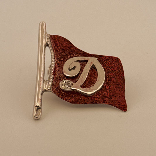 Pin "D" din argint 925 montat pe steagul clubului Dinamo – Un omagiu simbolic pentru Dinamo cu piatra batuta cubic ziconia.